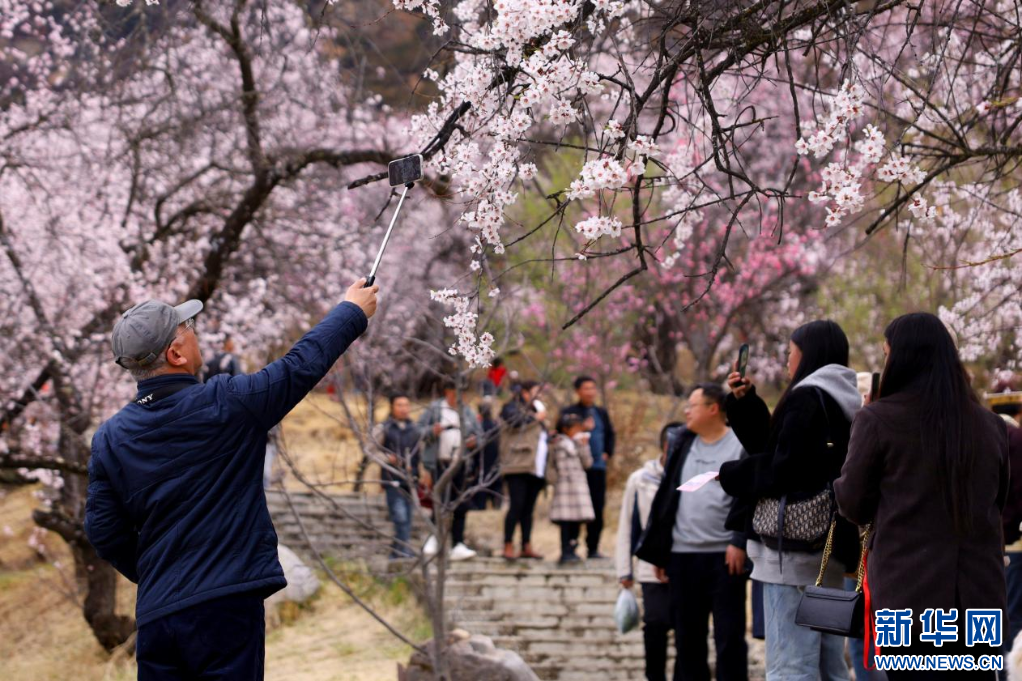 3月31日,游客在林芝市巴宜區(qū)嘎拉村進(jìn)行線上直播。新華網(wǎng)發(fā) 李騰 攝