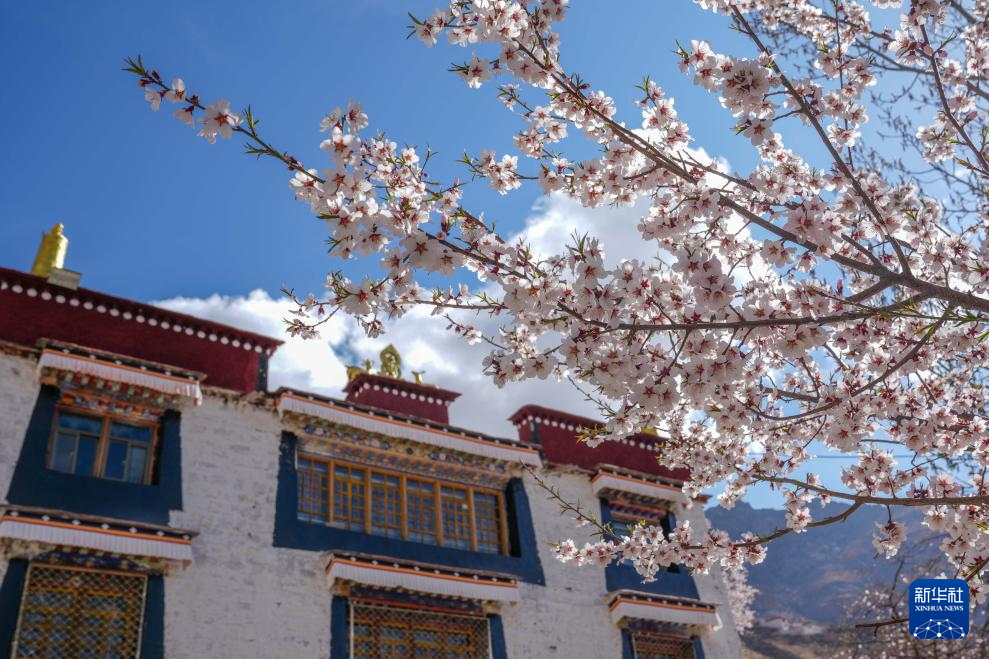 拉薩古剎帕崩崗四周桃花盛開(4月5日攝)。新華社記者 旦增尼瑪曲珠 攝