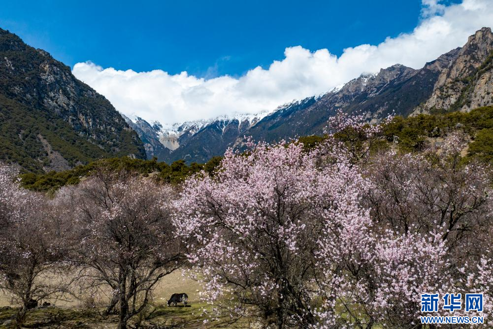 4月5日,在嘉黎縣尼屋鄉(xiāng)境內盛開的桃花。新華網 旦增努布 攝