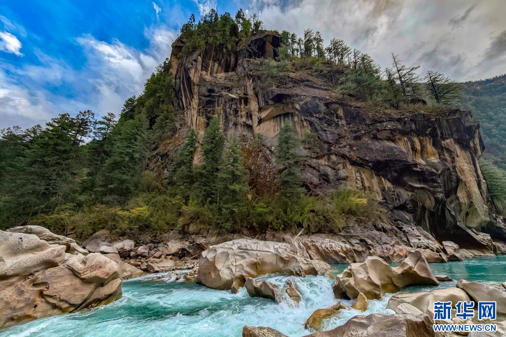4月5日,在嘉黎縣境內拍攝的“水磨巖”峽谷景觀。 新華網 旦增努布 攝
