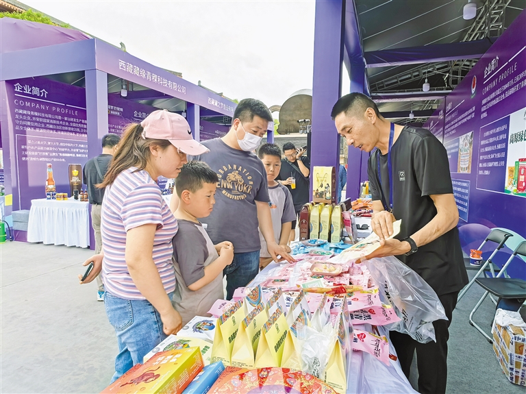 “牦牛肉干、青稞餅干等西藏特產(chǎn)都是健康綠色有機(jī)食品,應(yīng)該讓更多的人了解?!睆暮眮砦靼猜糜蔚睦壮F(xiàn)場(chǎng)購(gòu)買了一聽青稞啤酒,打開品嘗后,他豎起了大拇指。從未踏足西藏的他,在西安品嘗到了西藏“味道”。