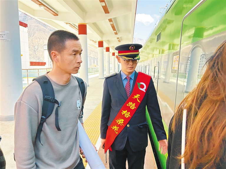 圖為山南火車站工作人員引導(dǎo)旅客有序進(jìn)入復(fù)興號動車。記者 武沛濤 攝