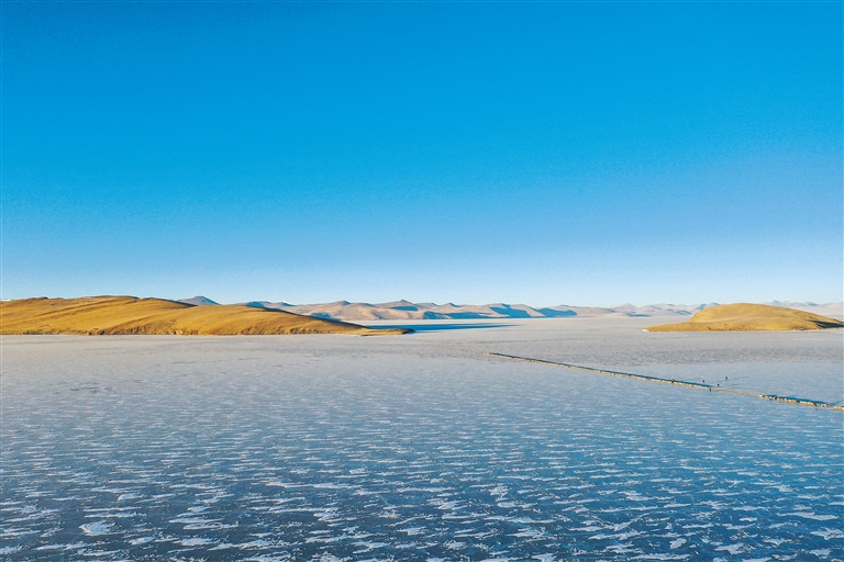 圖為結冰的山南市浪卡子縣普姆雍錯一角。(資料圖片)記者 潘多 攝