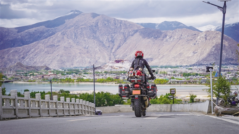 在現(xiàn)場(chǎng),有的游客走在車前,用拖車?yán)K假裝拽著車子往坡上走;有的游客探出車子的天窗揮手;有的摩友駕駛自己的愛車擺出炫酷的姿勢(shì)……大家獨(dú)特的拍攝pose,只為留下自己與這座城市美好鏈接的重要時(shí)刻?!拔覀儊碜赃|寧省大連市,這是我第一次來拉薩。這里山美、水美,人也熱情淳樸?!眲倓偱臄z完的游客牛小雷說,“我是通過網(wǎng)絡(luò)平臺(tái)的推送了解到這個(gè)S彎的,今天來感受一下,感覺非常好!”