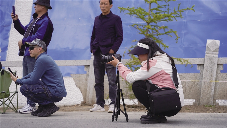 “太酷了!”“太震撼了!”5月11日,記者來到火遍全網(wǎng)的“拉薩最美S彎”,不時(shí)聽到游客和攝影師對(duì)拍攝成果的贊嘆,只見路邊架滿了相機(jī),來自天南海北的游客駕駛著各地牌照的汽車及摩托車有序排隊(duì)過彎,并拍照留念。