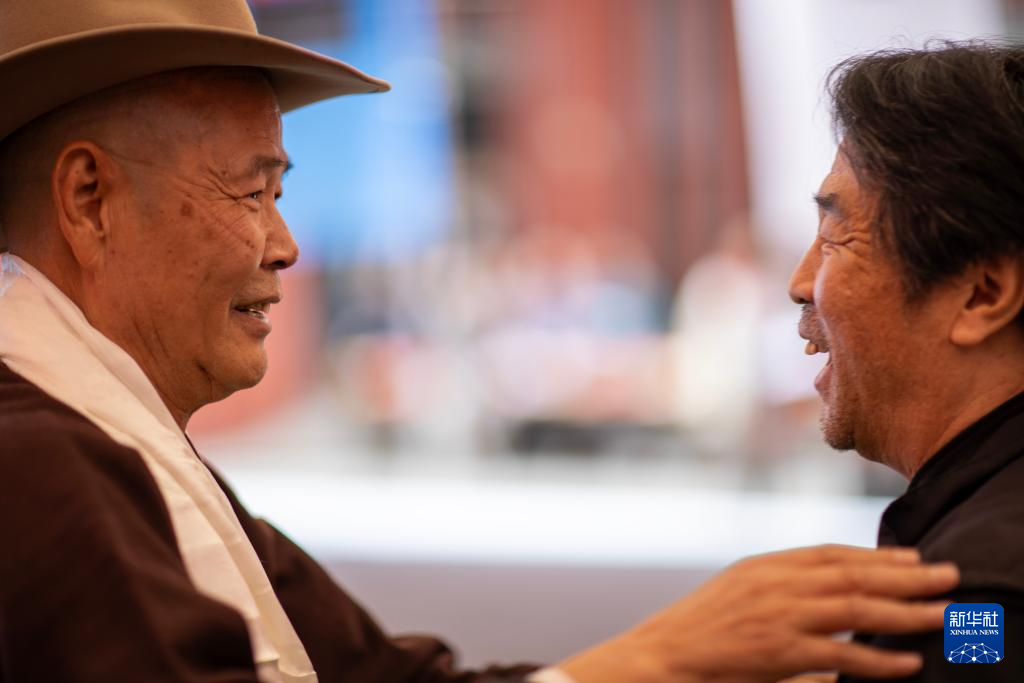5月18日,吳雨初(左)在西藏牦牛博物館與友人交談。新華社記者 姜帆 攝 ??
