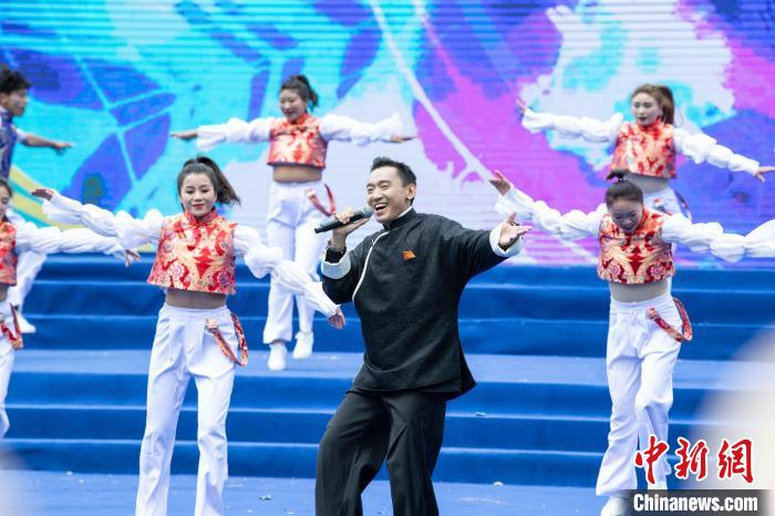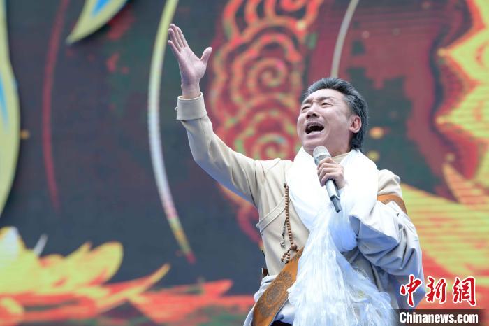 圖為歌手容中爾甲正在演唱歌曲《高原紅》。貢嘎來(lái)松 攝