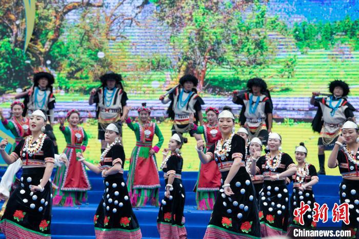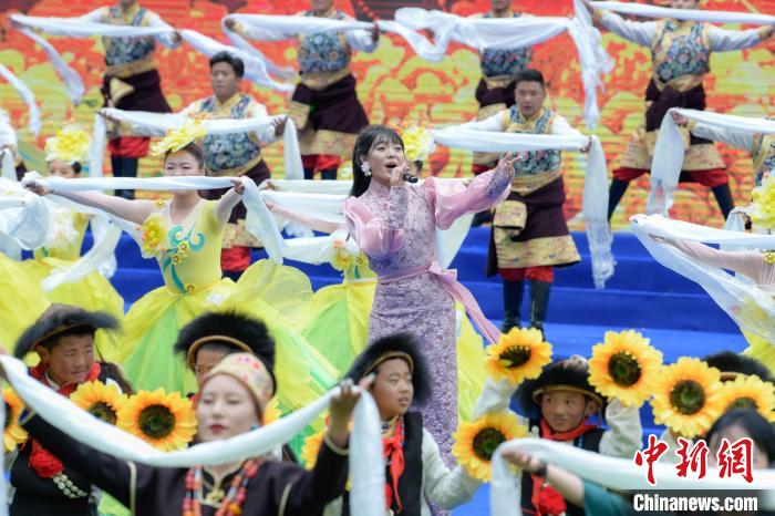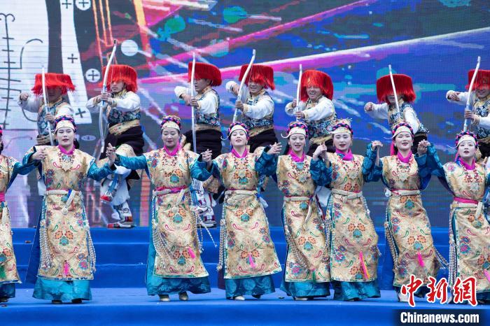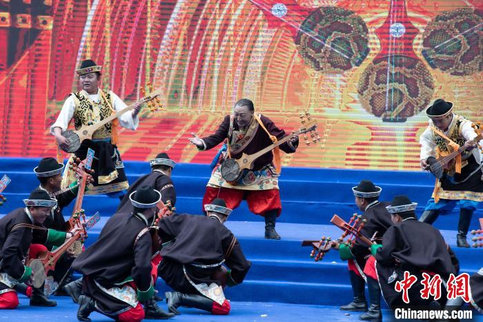 圖為開(kāi)幕式上的文藝演出現(xiàn)場(chǎng)。貢嘎來(lái)松 攝
