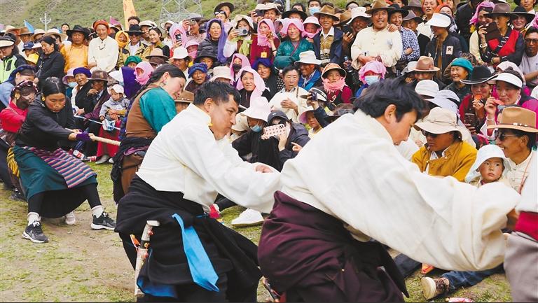 “‘繽紛四季·多彩林周’活動(dòng)內(nèi)容實(shí)在是太豐富了,我們沿途觀賞到了美景,而且還體驗(yàn)了西藏民俗風(fēng)情,現(xiàn)場(chǎng)看到村民們擠牦牛奶、手工制作奶制品、指尖技藝制作酥油花等。讓我們感到震驚的是藏族大哥、大姐的力氣真是太大了,能用繩子拉動(dòng)越野車(chē),扛起百斤重的石頭,給我們帶來(lái)了滿滿的視覺(jué)盛宴。我是第三次進(jìn)藏,這次的收獲最多,讓我體驗(yàn)到了不一樣的西藏?!眮?lái)自北京的游客張先生興奮地說(shuō)。