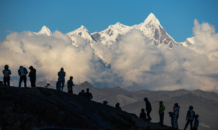 游客在色季拉山口的川藏公路邊觀賞南迦巴瓦峰風光(2023年9月5日攝)。新華社記者 丁增尼達 攝