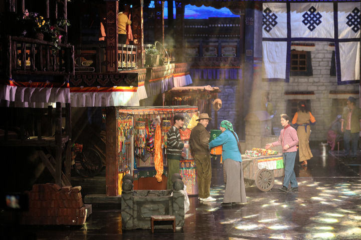 2022年3月23日,話劇《八廓街北院》在西藏自治區(qū)藏戲演藝中心上演。該劇由西藏自治區(qū)話劇團創(chuàng)作演出,以拉薩八廓街為背景,展現(xiàn)了一座多民族聚居院落的鄰里深情。新華社記者 姜帆 攝