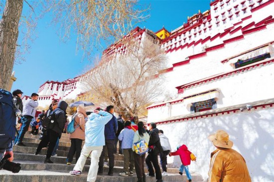 圖為春節(jié)假期期間,游客在參觀布達拉宮。記者 平措次仁 攝
