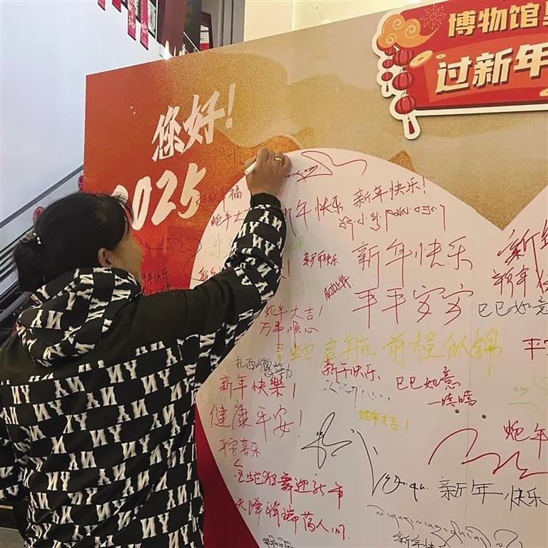 活動期間,博物館大廳的新年愿望墻備受歡迎,成為觀眾們的熱門打卡點。人們紛紛在心愿貼上寫下對新年的美好期許,隨后領(lǐng)取博物館精心準備的節(jié)日紀念品。同時,博物館推出的集卡集章活動也吸引了眾多參與者。觀眾們通過參與館內(nèi)各項活動收集紀念章,就有機會在年末收獲博物館準備的神秘大獎,這一活動極大地激發(fā)了大家的參與熱情。