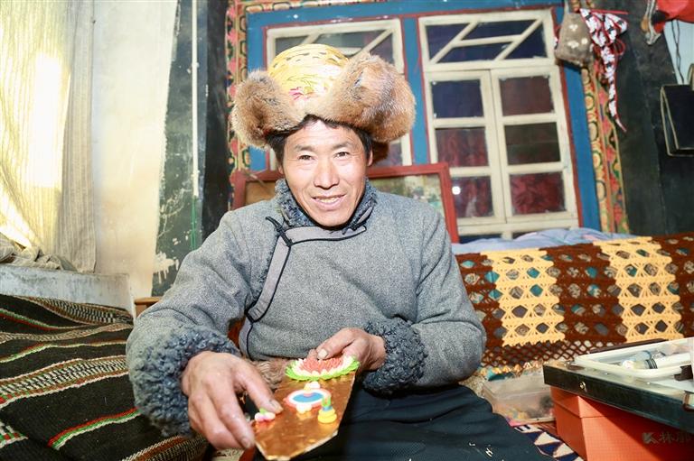 旦索朗正在制作酥油花。