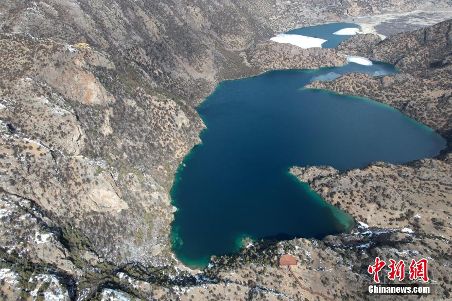 2月16日,位于西藏昌都市邊壩縣的“三色湖”在群山環(huán)抱中景色壯美?!叭庇珊诤?、白湖、黃湖組成,群山環(huán)抱中的三處相鄰湖泊在陽(yáng)光下分別呈現(xiàn)不同色彩。圖為三色湖景色。中新社記者 李林 攝(無(wú)人機(jī)照片)