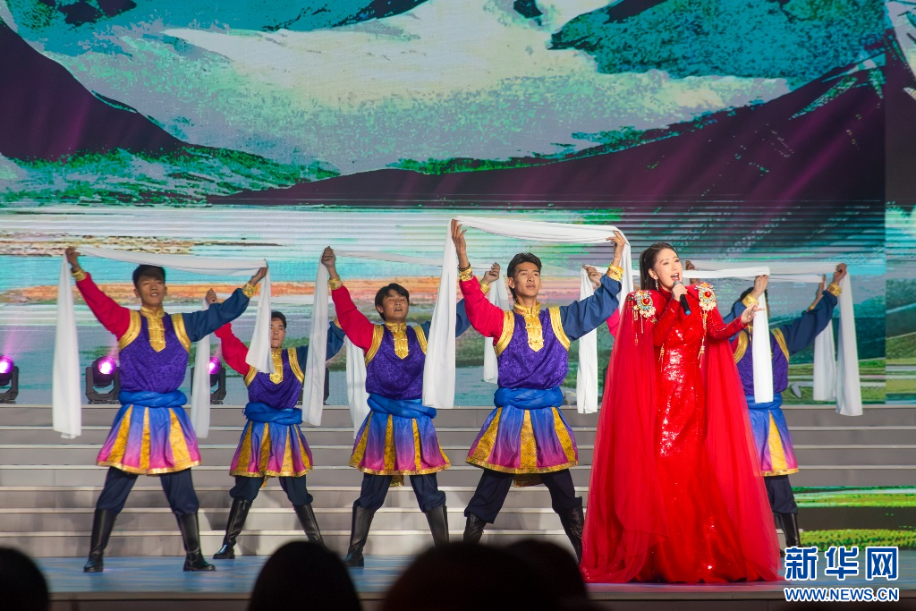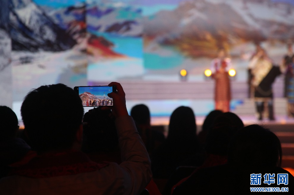 歌手次仁拉姆在錄制現(xiàn)場表演(2月14日攝)。新華網(wǎng)發(fā) 龍杰明 攝