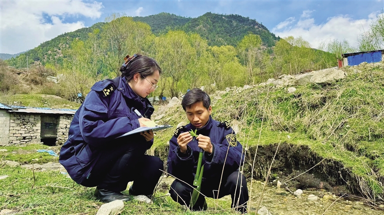 拉薩海關(guān)所屬吉隆海關(guān)關(guān)員開(kāi)展國(guó)門生物安全監(jiān)測(cè)。圖由拉薩海關(guān)提供