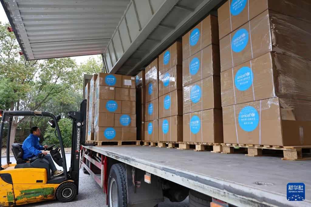 聯(lián)合國兒童基金會捐贈西藏地震災(zāi)區(qū)文教用品從上海起運