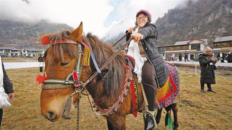 游客在扎日鎮(zhèn)體驗(yàn)騎馬。