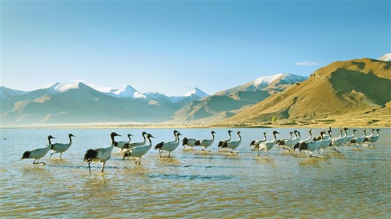拉薩市人民政府副市長白瑪玉珍介紹,林周縣憑借著得天獨(dú)厚的生態(tài)資源和豐富的人文景觀,成為此次活動(dòng)的亮點(diǎn),特別是黑頸鶴這一珍稀物種在林周繁衍生息,為拉薩的生態(tài)畫卷增添了無限生機(jī),也充分展示了拉薩生態(tài)、文化、旅游相互融合發(fā)展的成果。舉辦此次活動(dòng)是為了通過對(duì)生態(tài)以及對(duì)黑頸鶴的宣傳推廣,將拉薩自身的歷史、生態(tài)、人文等多方面的特色融為一體,向世界展示一個(gè)獨(dú)特而富有魅力的城市形象?!澳壳?,黑頸鶴作為拉薩市特有珍稀鳥類,已成為拉薩‘市鳥’,同時(shí)政府也鼓勵(lì)廣大市民以‘市鳥’為主題進(jìn)行藝術(shù)創(chuàng)作,進(jìn)一步豐富城市的文化內(nèi)涵?!卑赚斢裾湔f。