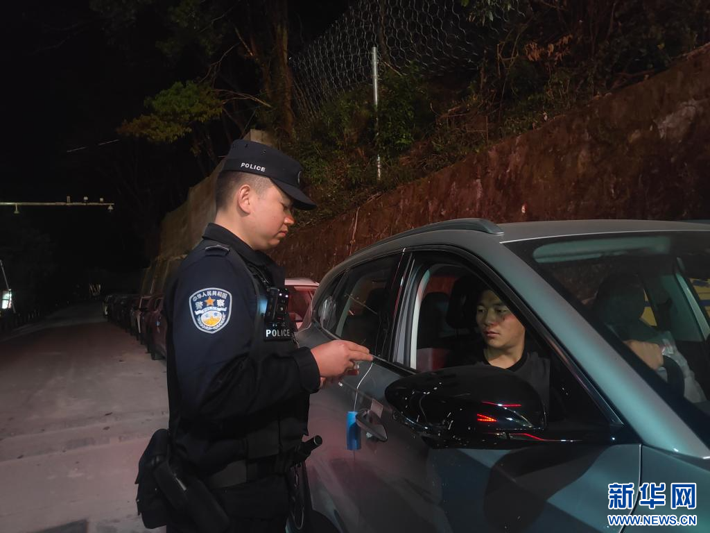 這是民警夜間指導(dǎo)待出口新能源汽車(chē)輛??靠诎额A(yù)檢預(yù)放車(chē)位。(新華社發(fā) 洛追次仁 攝)