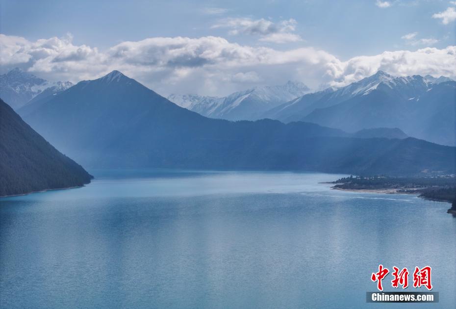 3月30日,航拍巴松措春日風(fēng)景。巴松措又名錯(cuò)高湖,位于西藏自治區(qū)林芝市工布江達(dá)縣,是西藏首個(gè)自然風(fēng)景類國(guó)家5A級(jí)旅游風(fēng)景區(qū)。從空中俯瞰巴松措,碧藍(lán)的湖水被雪山、森林環(huán)繞,宛如鑲嵌在群山間的“藍(lán)寶石”。(無人機(jī)照片)中新社記者 馬銘言 攝