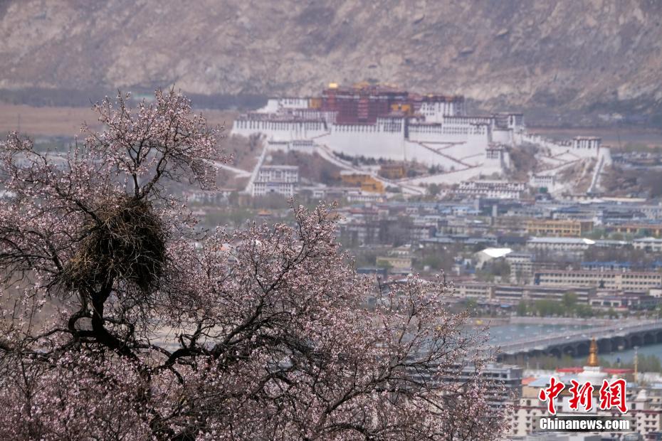 3月下旬,高原已是一片春意。西藏拉薩市區(qū)拉薩河南岸慈覺林的古桃樹進(jìn)入盛花期,3月30日恰逢周末,不少市民游客前往賞花“打卡”,在桃樹下野餐等,享受高原春日風(fēng)光。圖為3月30日,慈覺林的桃花和遠(yuǎn)處的布達(dá)拉宮。江飛波 攝