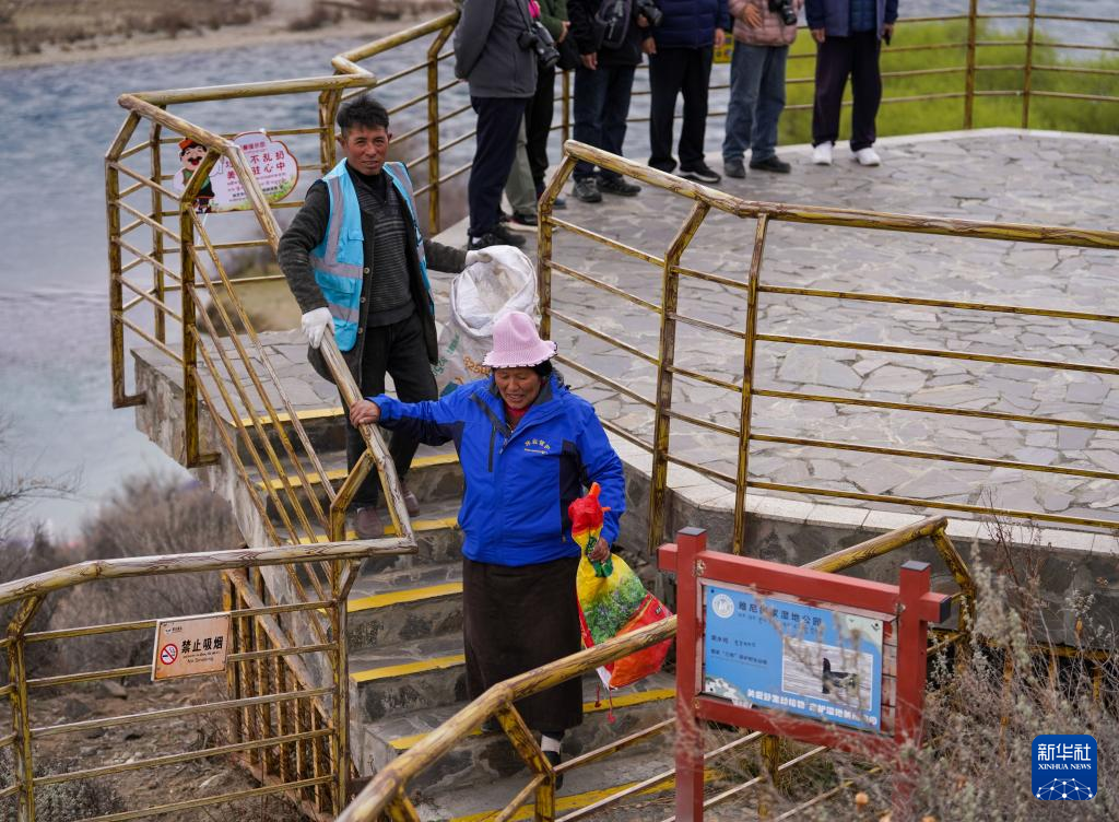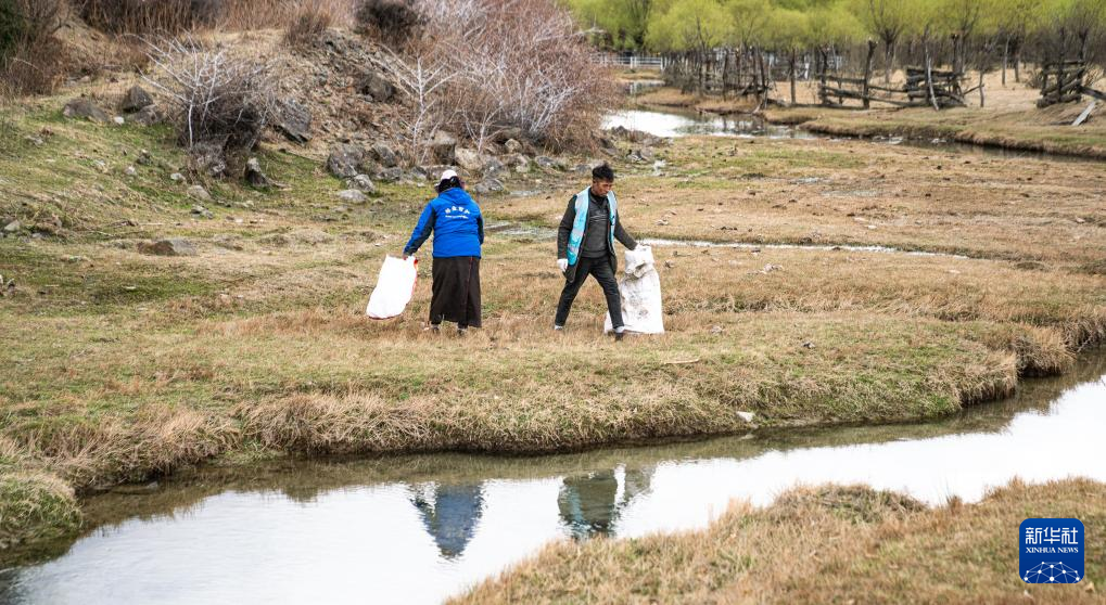 4月4日,雅尼國家濕地公園管護(hù)員在巡護(hù)途中清理垃圾。新華社記者 丁增尼達(dá) 攝?