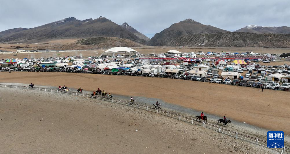 4月27日,第二屆東日馬超邀請賽比賽現(xiàn)場(無人機(jī)照片)。新華社記者 晉美多吉 攝