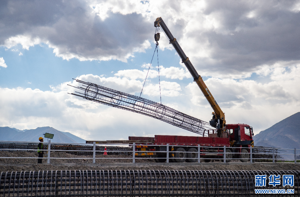 這是5月12日拍攝的拉薩高新大橋施工現(xiàn)場。新華網(wǎng) 旦增努布 攝