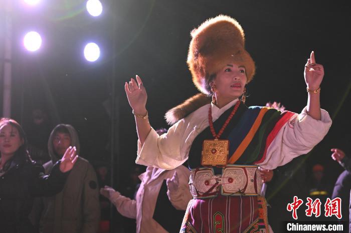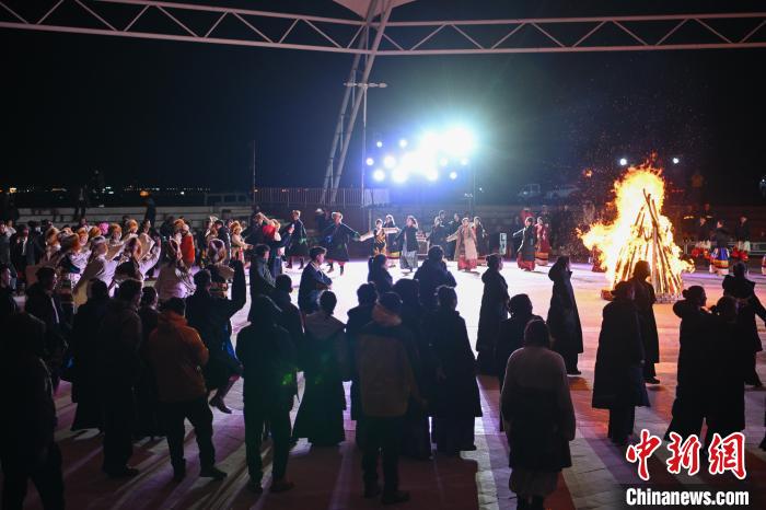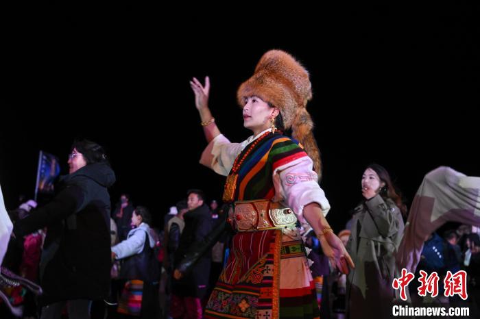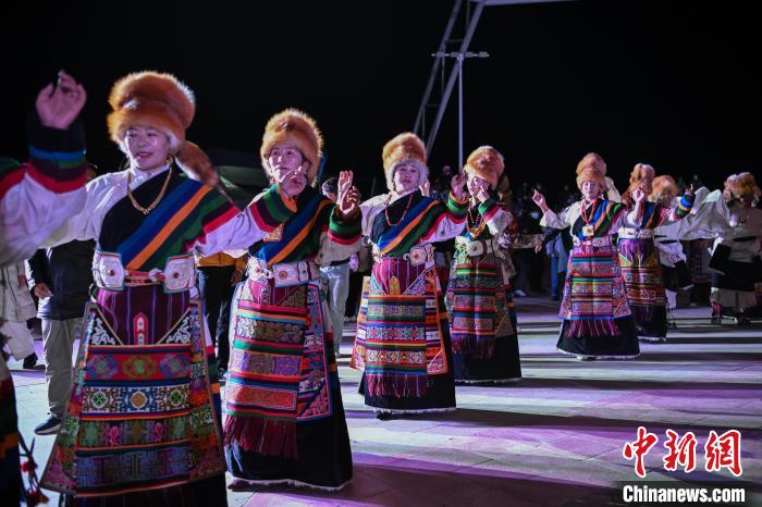 圖為“情定當雄”篝火鍋莊晚會現(xiàn)場。中新社記者 貢嘎來松 攝