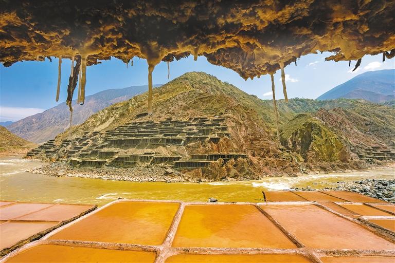 這里便是西藏最負(fù)盛名的芒康鹽井。據(jù)文獻(xiàn)記載,這里的曬鹽活動可追溯至唐朝,歷經(jīng)1000多年的風(fēng)雨,成為人類文明的珍貴樣本。2008年,“井鹽曬制技藝”被列入國家級非物質(zhì)文化遺產(chǎn)名錄,讓這片土地成為連接歷史與現(xiàn)實(shí)的紐帶。芒康鹽井的鹽田主要分布在納西民族鄉(xiāng)瀾滄江沿岸的上鹽井村、納西村和加達(dá)村。同行的納西民族鄉(xiāng)人民政府工作人員四郎多杰告訴記者,因?yàn)憸娼瓋砂兜耐临|(zhì)差異,西岸產(chǎn)紅鹽,東岸產(chǎn)白鹽。說到這里,四郎多杰笑著說:“有趣的是,我們和曲孜卡鄉(xiāng)之間只有不到6公里的距離,但是那邊只有溫泉沒有鹽,而我們這只有鹽沒有溫泉?!?/p>