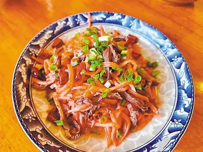 這道酸蘿卜炒牛肉也出現(xiàn)在了旺扎家的團(tuán)圓飯上,厚切的牛肉帶著恰到好處的酸味,深受一家人喜愛(ài)。“這道菜色香味俱全,大家都愛(ài)吃?!蓖鸂敔斝χf(shuō)。
