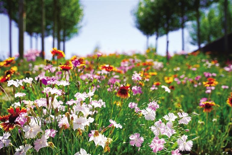 六月的拉薩,陽(yáng)光正好。澄澈藍(lán)天如洗,高遠(yuǎn)而明亮。柳梧大橋下的濱河公園,河畔草地鋪滿各色小花,紅的明艷、粉的柔和、紫的淡雅,肆意綻放在綠意間,仿佛步入印象派大師莫奈的畫(huà)布之中。成片盛開(kāi)的各類(lèi)花卉爭(zhēng)奇斗艷,五彩斑斕的花朵沿著河畔鋪展開(kāi)來(lái),形成一片片絢麗的花海。不同顏色的花朵相互交織,隨風(fēng)搖曳,與藍(lán)天白云、碧綠的河水、遠(yuǎn)處綠意盎然的南山相映成趣,構(gòu)成了一幅花海畫(huà)卷。