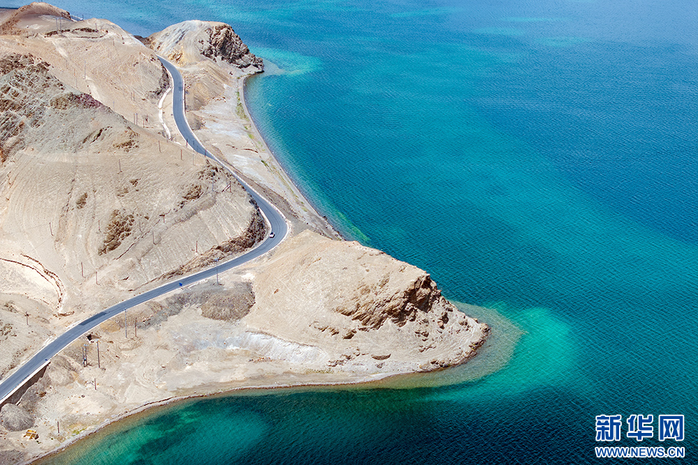 班公湖一角(6月15日攝,無人機照片)。新華網 旦增努布 攝