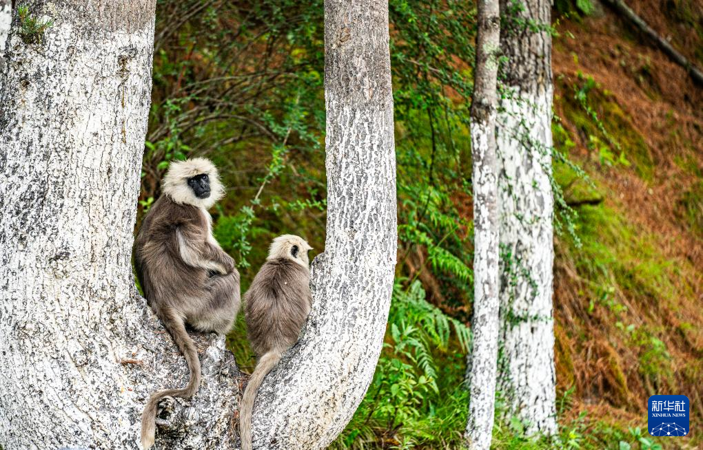 這是6月20日在亞東縣拍攝的長尾葉猴。新華社記者 丁增尼達(dá) 攝 ??