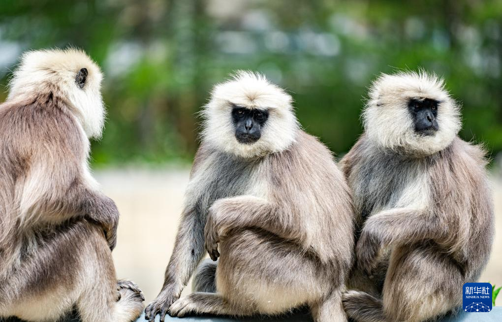 6月20日,三只長尾葉猴蹲在亞東縣一條公路邊。新華社記者 丁增尼達(dá) 攝 ??
