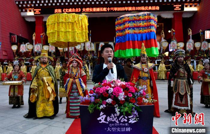 圖為《文成公主》大型實景劇第十三季演出100場慶典活動現(xiàn)場。李林 攝