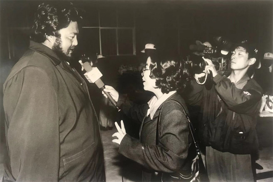 1999年澤玉(左二)參加第六屆全國少數(shù)民族傳統(tǒng)體育運(yùn)動(dòng)會(huì)報(bào)道時(shí)的工作照。澤玉供圖