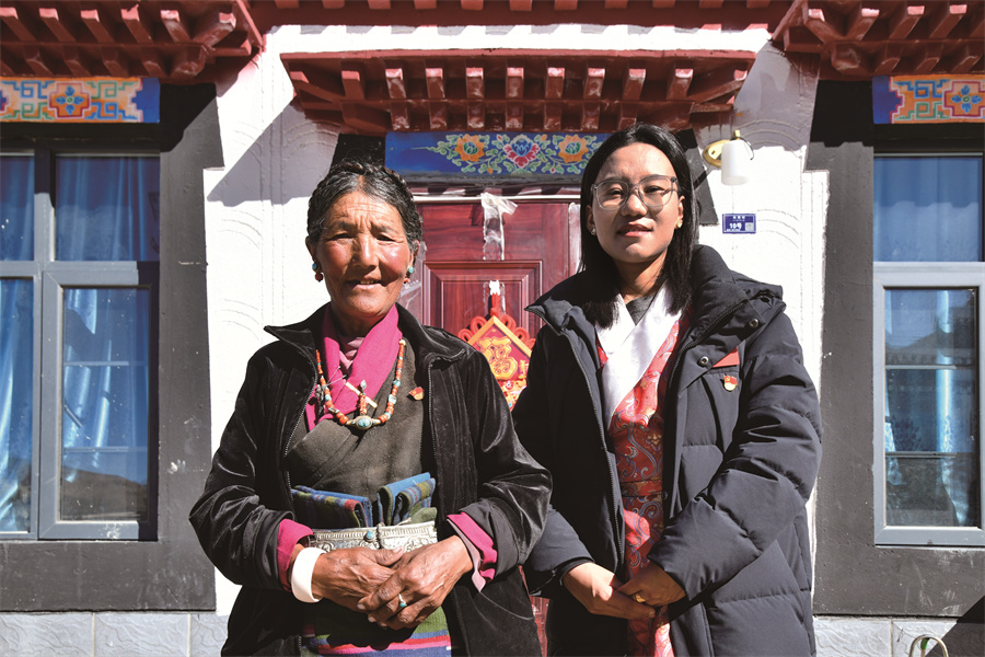 白堆村的兩位女支書達(dá)娃卓瑪(左)和次仁吉巴(右)。趙振宇 攝