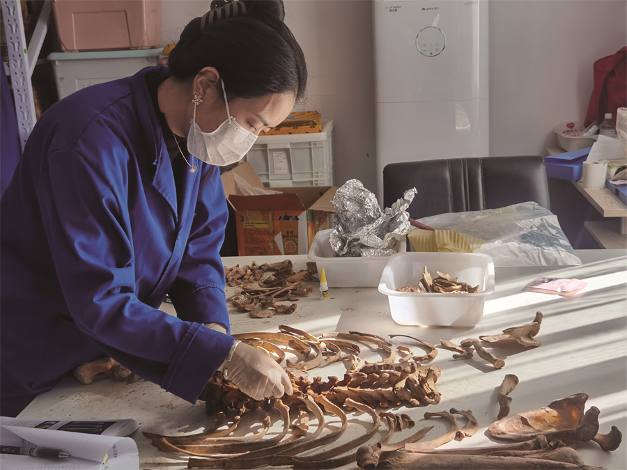 擁措對(duì)桑達(dá)隆果墓地出土骨骼進(jìn)行分類觀察。