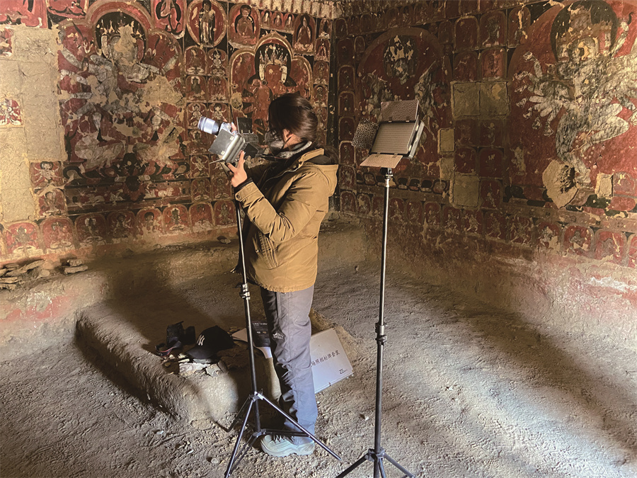 有高崖與深谷——在日喀則的吉隆石窟,石窟高懸在落差500米以上的峭壁上,僅有一條30厘米寬、時(shí)有時(shí)無(wú)的小路通往,一側(cè)就是萬(wàn)丈深淵。在村干部又拖又拽的竭力幫助下,隊(duì)員們好不容易才走上去。調(diào)查完后要下山來(lái),何偉回憶,“我往下一看,實(shí)在腿軟,坐在洞窟口,說(shuō)我不想下去了,村干部聽(tīng)到也哭喪著臉,說(shuō)我們也不想你下去?!?/p>
