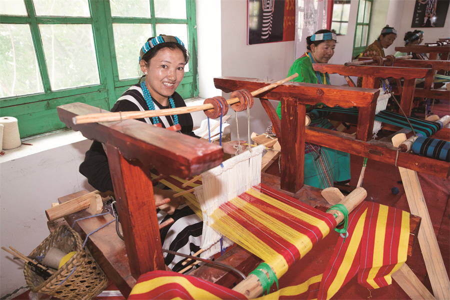 山南市珞巴族婦女正在編織國(guó)家級(jí)非遺“珞巴服飾”。次仁龍布 攝