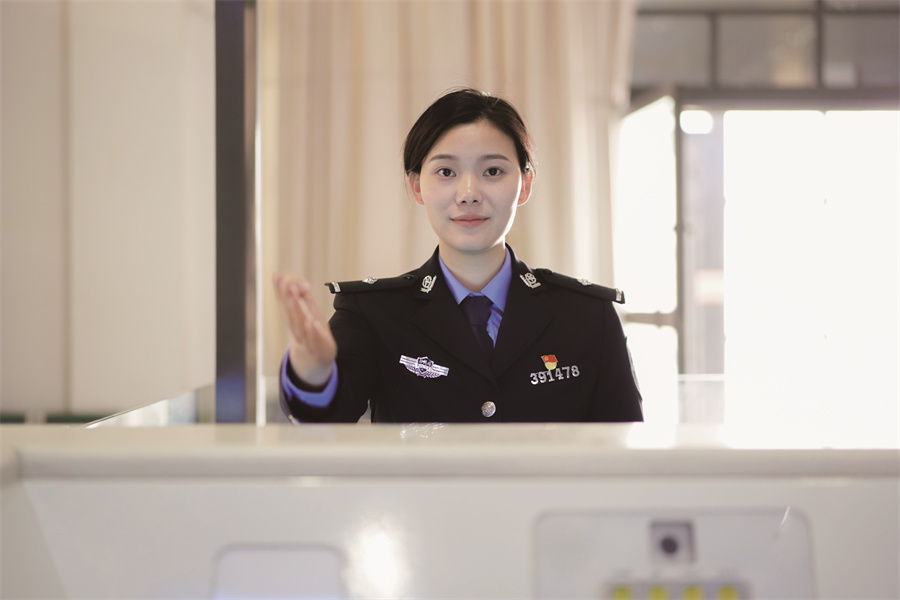 從小聽(tīng)著父親在邊境巡邏的故事長(zhǎng)大,“橄欖綠”是白瑪央宗童年最深刻的記憶。父親常教導(dǎo)她:“守土有責(zé),守土盡責(zé)。”2019年,隨著公安邊防部隊(duì)改革,父輩的“橄欖綠”變成了她的“藏青藍(lán)”。身份在變,但那份流淌在血液里的忠誠(chéng)從未改變。白瑪央宗將藏族兒女特有的淳樸與熱情融入邊檢工作,面對(duì)首次乘機(jī)的藏族同胞,她用家鄉(xiāng)話耐心引導(dǎo),化解他們的不安;面對(duì)外籍旅客,她進(jìn)行專業(yè)細(xì)致的解答,展示大國(guó)形象。她常說(shuō):“父親當(dāng)年用雙腳丈量界碑,現(xiàn)在我用微笑守衛(wèi)國(guó)門(mén)?!痹谌唑?yàn)證臺(tái)上,白瑪央宗用流利的外語(yǔ)和專業(yè)的素養(yǎng),迎接八方來(lái)客。