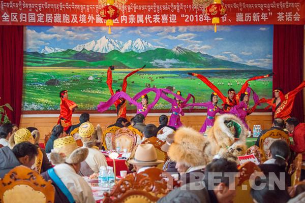 “扎西德勒!扎西德勒!”茶話會上,西藏歸國定居藏胞暢敘友情喜氣洋洋,并相互致以新年最美好的祝愿!