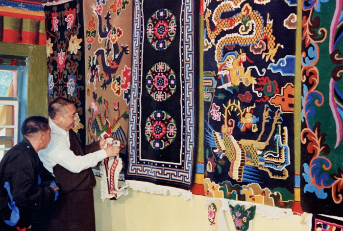 1982年7月,十世班禪大師視察拉薩團結(jié)卡墊生產(chǎn)合作社。劉麗嘉攝