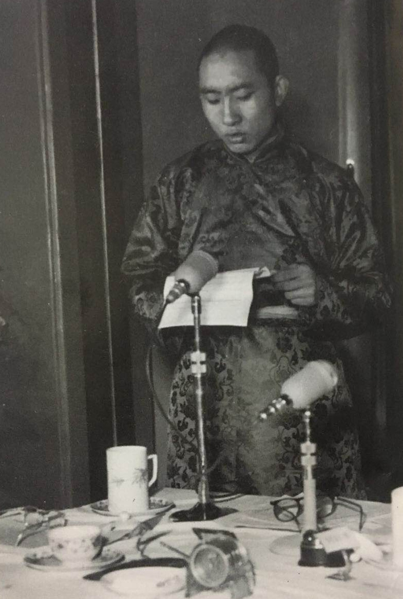 圖為1955年3月9日 十世班禪在國務(wù)院全體會(huì)議第七次會(huì)議上發(fā)言。翻拍自《班禪額爾德尼評(píng)傳》