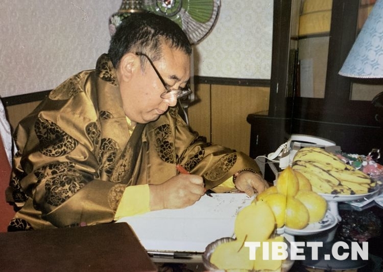 圖為班禪大師在中國(guó)藏語(yǔ)系高級(jí)佛學(xué)院院長(zhǎng)辦公室。(圖片翻拍自《十世班禪大師 劉隆攝影集》)