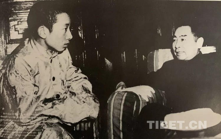 1951年4月,周恩來總理親切會見十世班禪。(翻拍自《十世班禪大師 劉隆攝影集》)