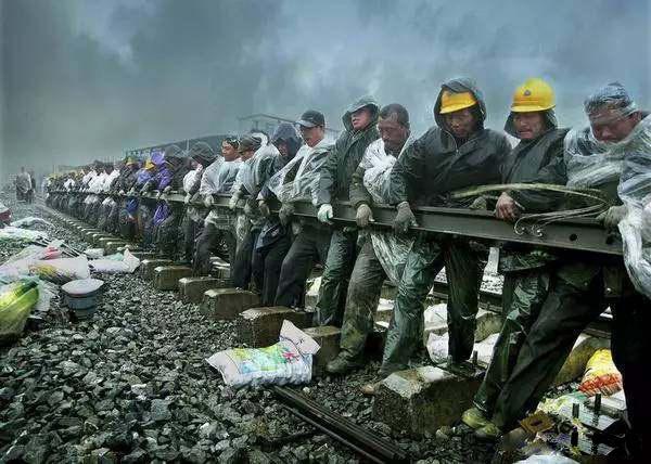 青藏鐵路施工人員齊心協(xié)力完成鐵路修建。(圖片來源:中國西藏網(wǎng))
